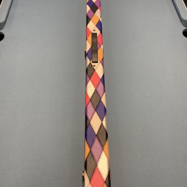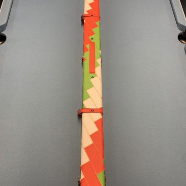 3/4 Wide Multi Coloured Beautiful Cue Case Light Brown Ends – Holds Two Jointed Cues or 3/4 Cue and Extensions ( Reduced To Clear )