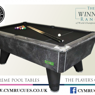 The Supreme Winner is an English pool table using 2” red and yellow balls as standard, with a one piece slate bed, available in 6ft and 7ft sizes. The Supreme Winner is a very popular choice due to its timeless design and great playing characteristics. It features genuine 3/4" Italian slate bed and the finest West of England woollen cloth. The Supreme Winner is the table of choice for many major championship events, where professional players and organisations insist on the best. It is endorsed by the World 8 Ball Federation and The International Professional Pool Players Association. We love the Supreme Winner, and so do many of our customers. That's why it is one of our best selling pool tables. It ticks all the boxes - great design, bulletproof build quality, and a genuine Italian slate bed playing surface which gives you Pool League gameplay in the comfort of your own home. Please Contact Us if your looking for a New Table and we will try our very best to supply you with a Table that suits your needs at a Great Price. Please Call or Email Us Today.-