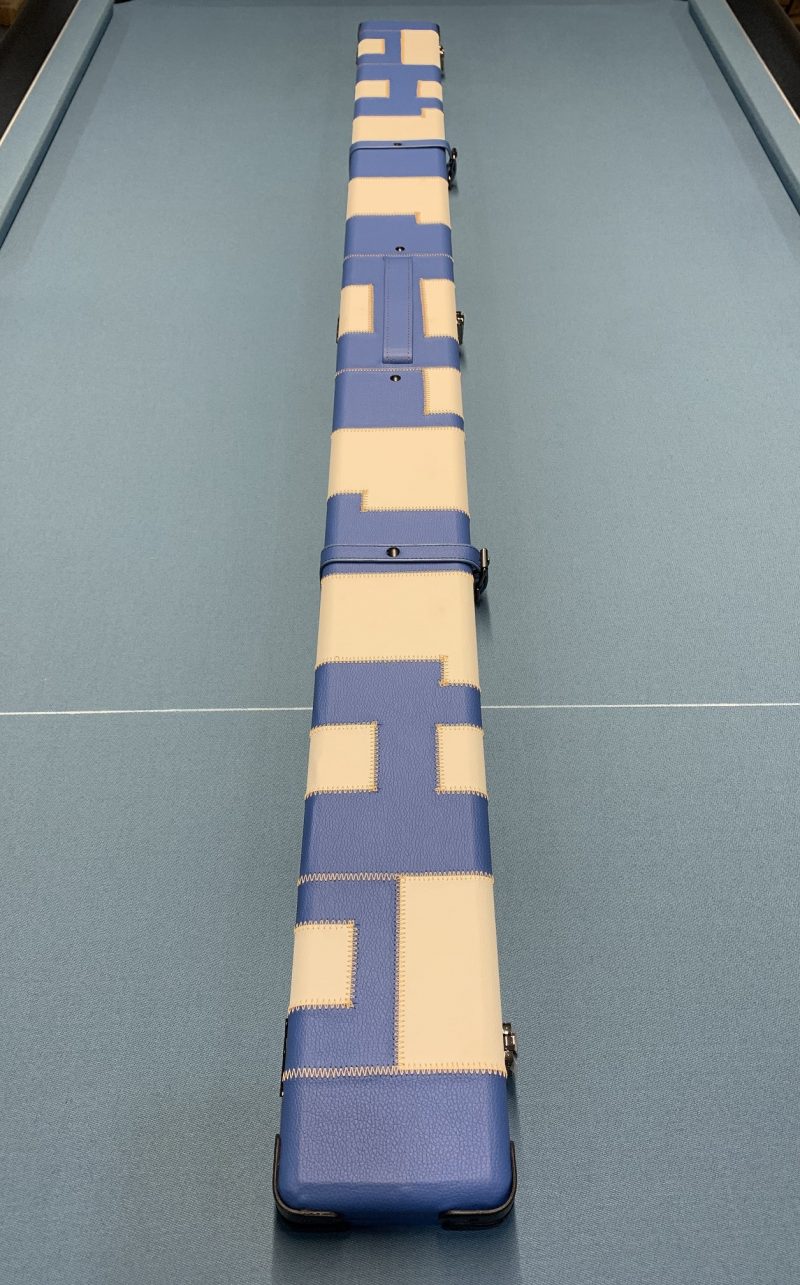 1 Piece Cue Case Holds 4x Cues – Blue/White Patchwork – Additional End Protectors