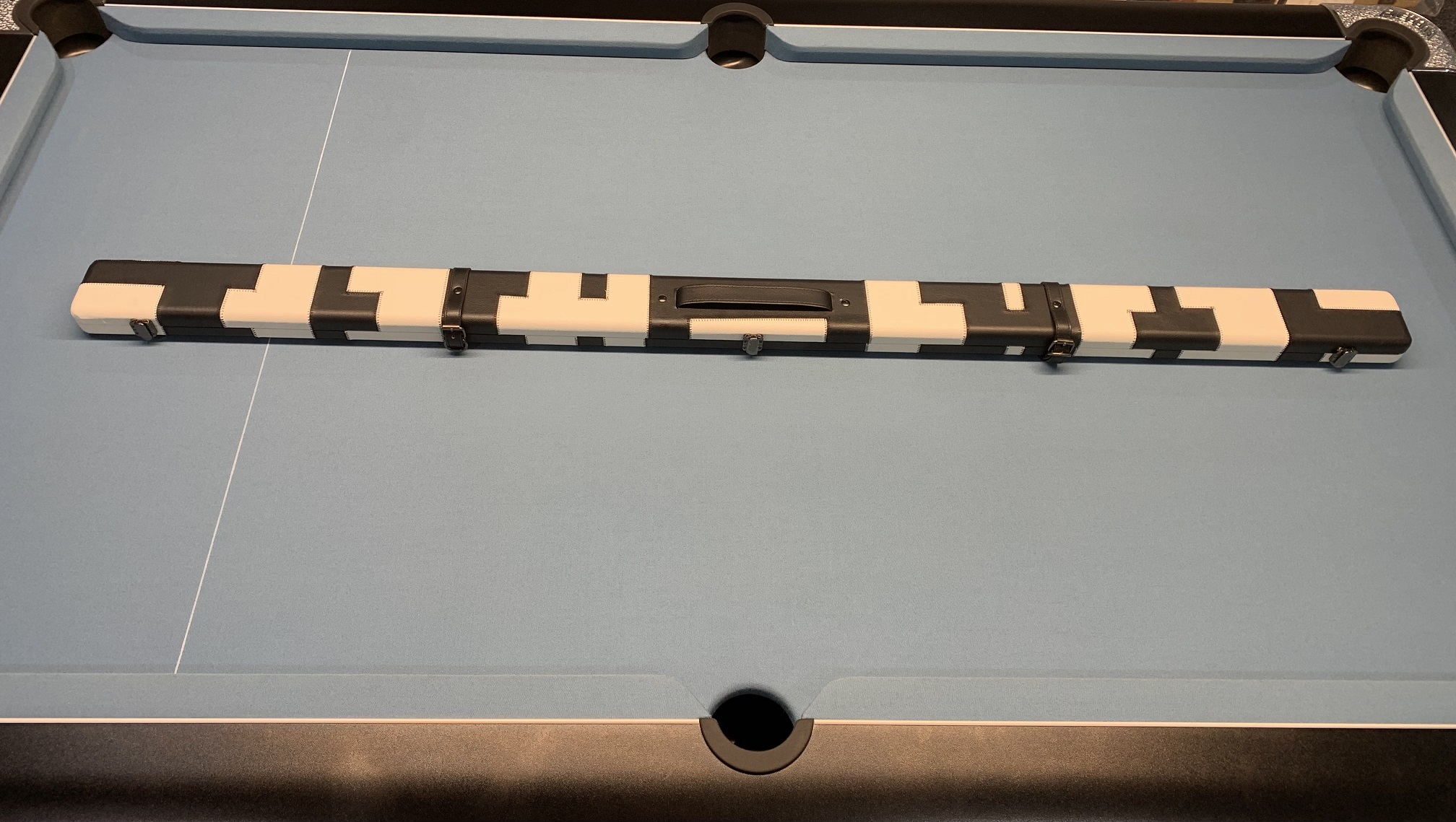 Brand New 1 Piece Cue Case Holds 2x Cues – Black/White Patchwork Design.