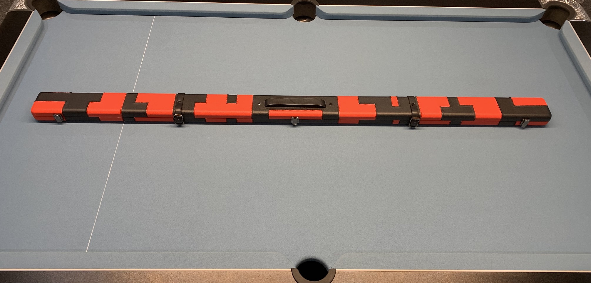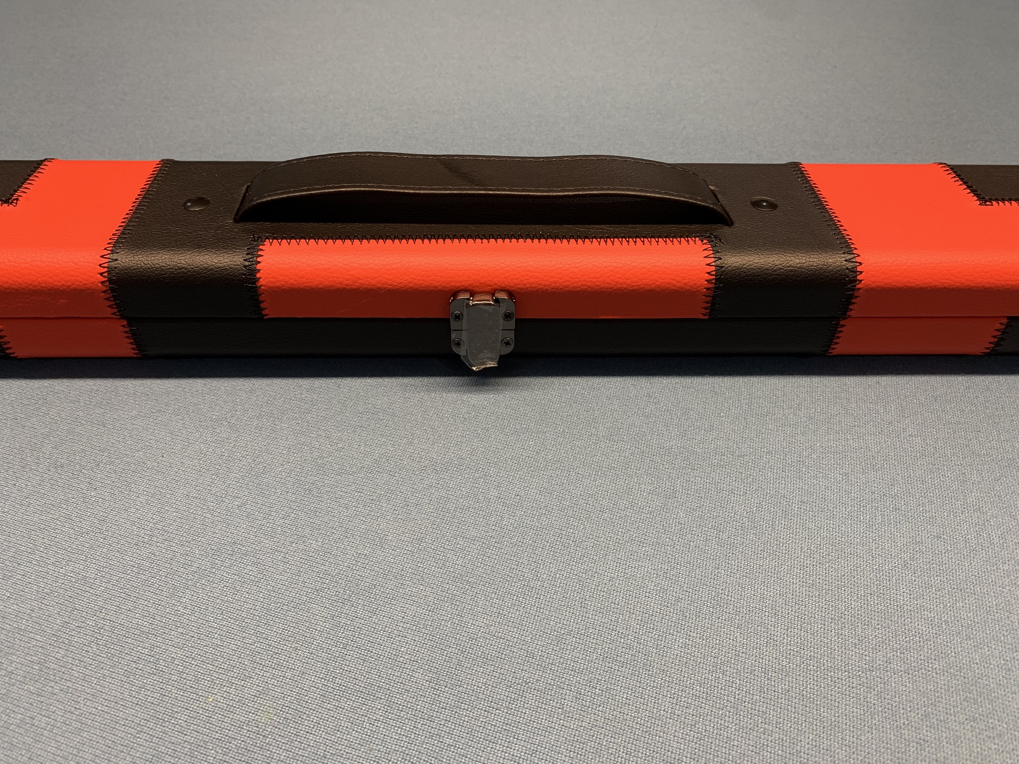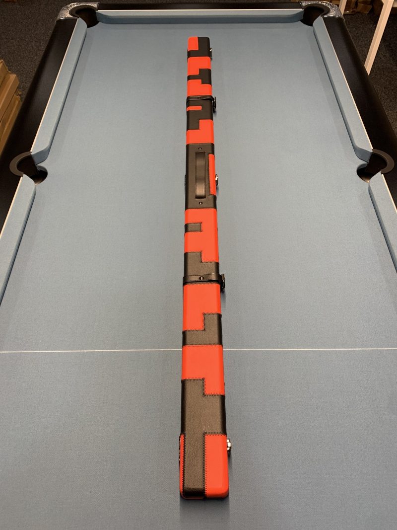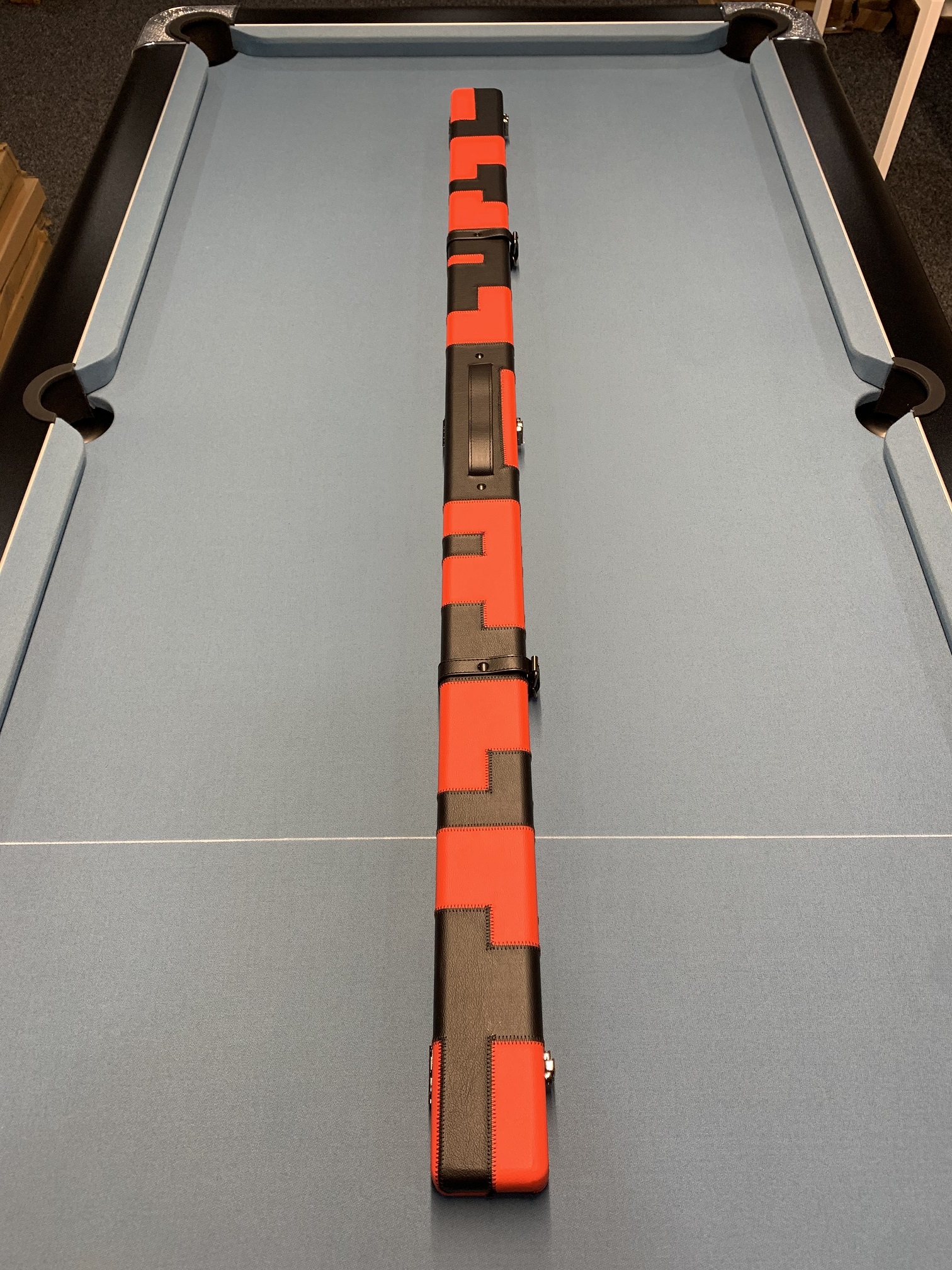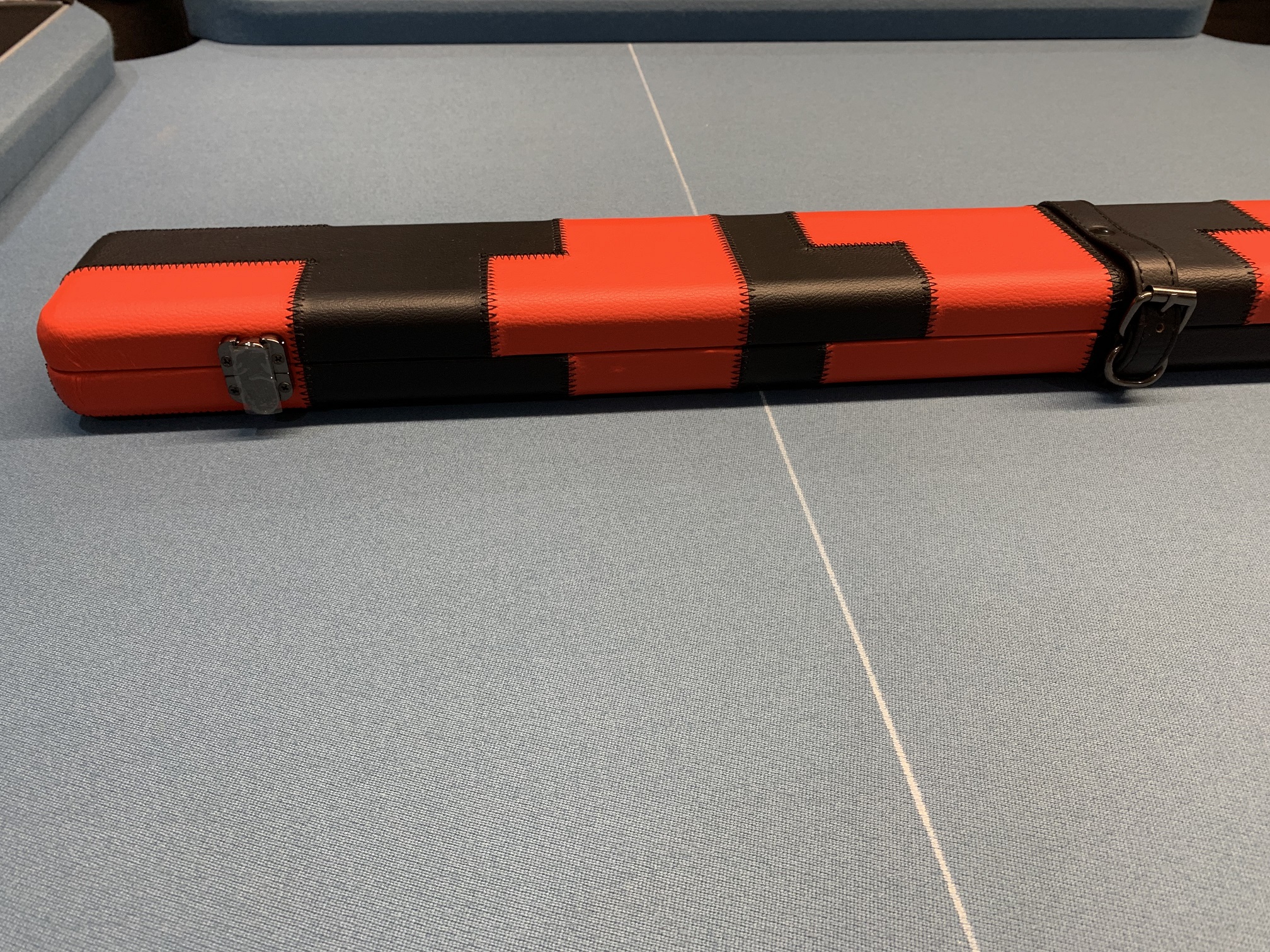 Brand New 1 Piece Cue Case Holds 2x Cues – Red/Black Patchwork Design.