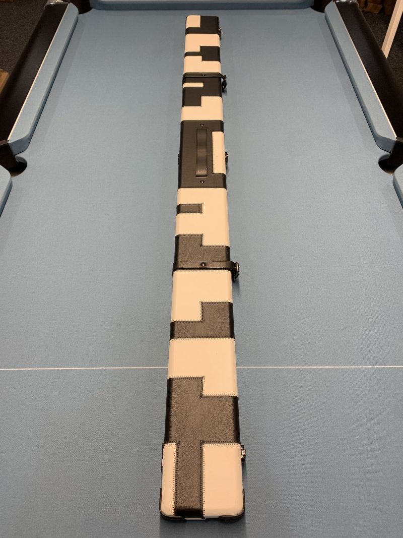 1 Piece Cue Case with 3 Compartments – Black/White Patchwork – Additional End Protectors