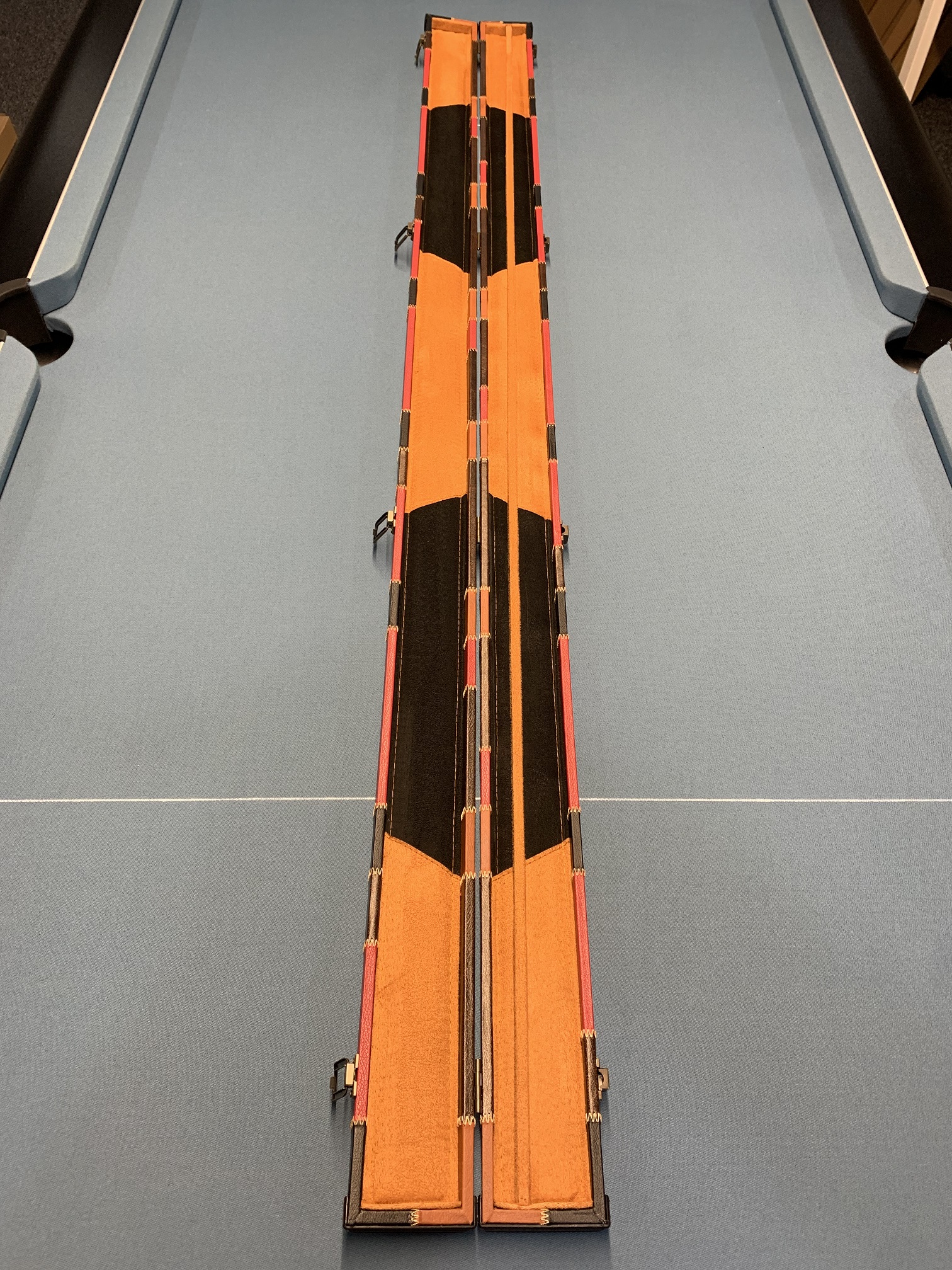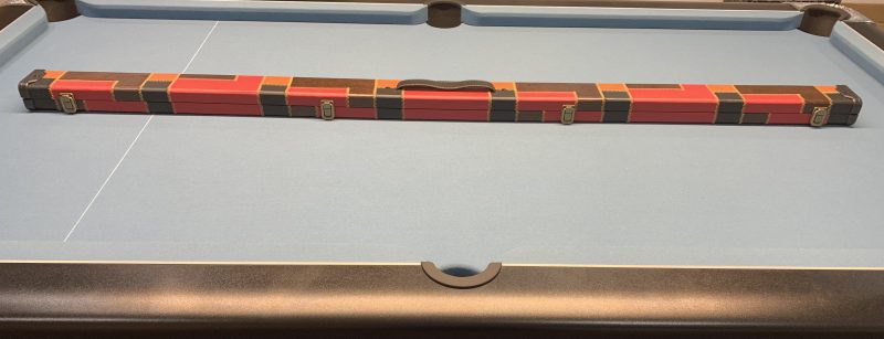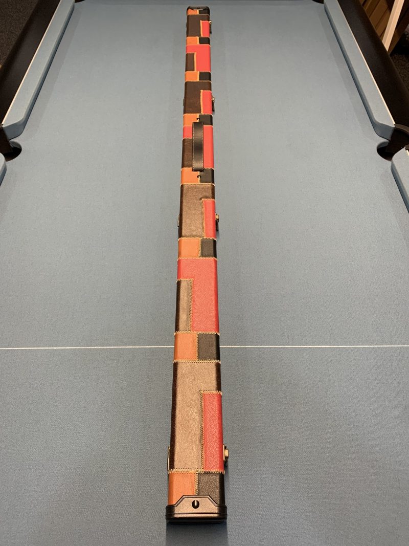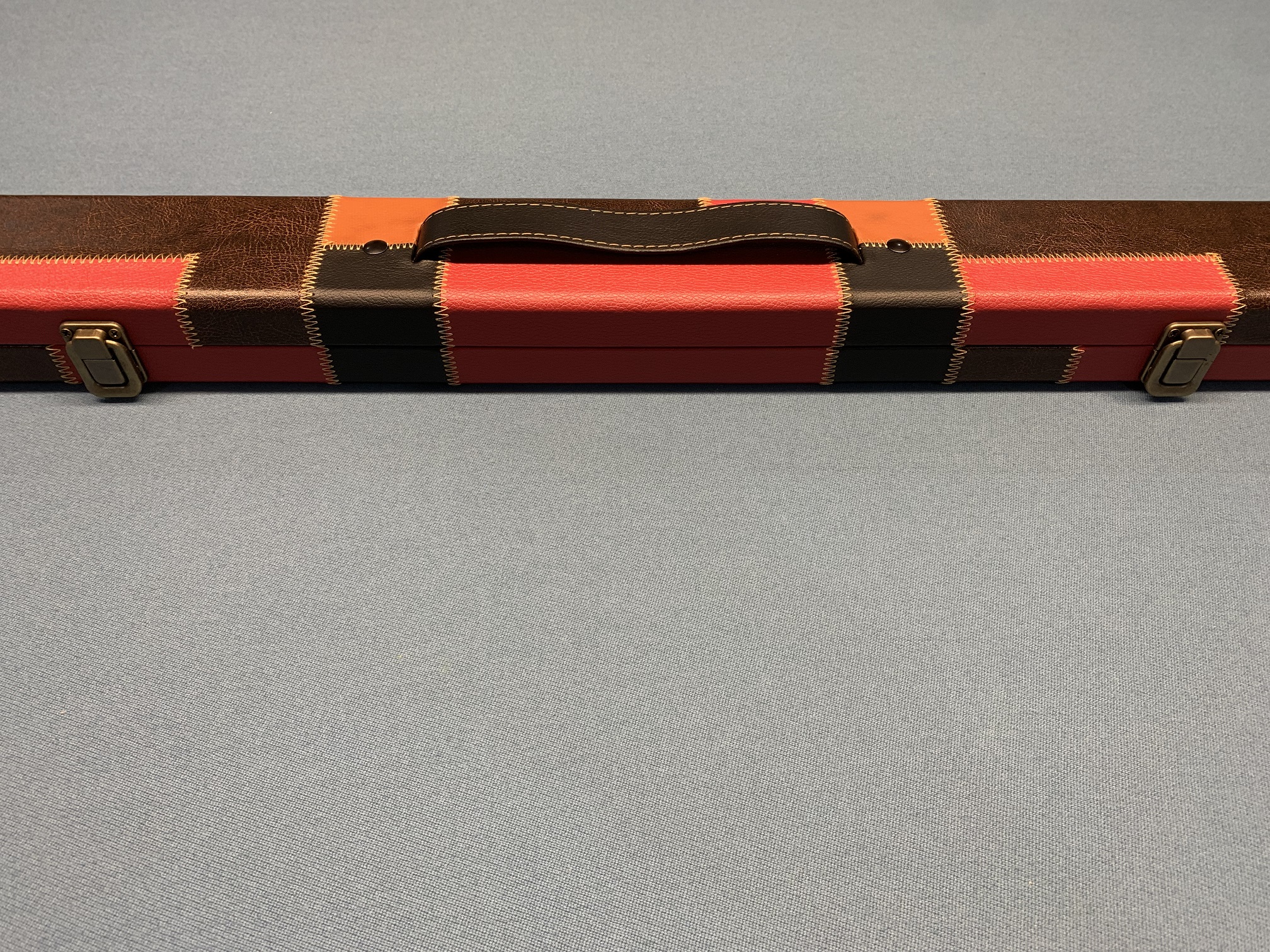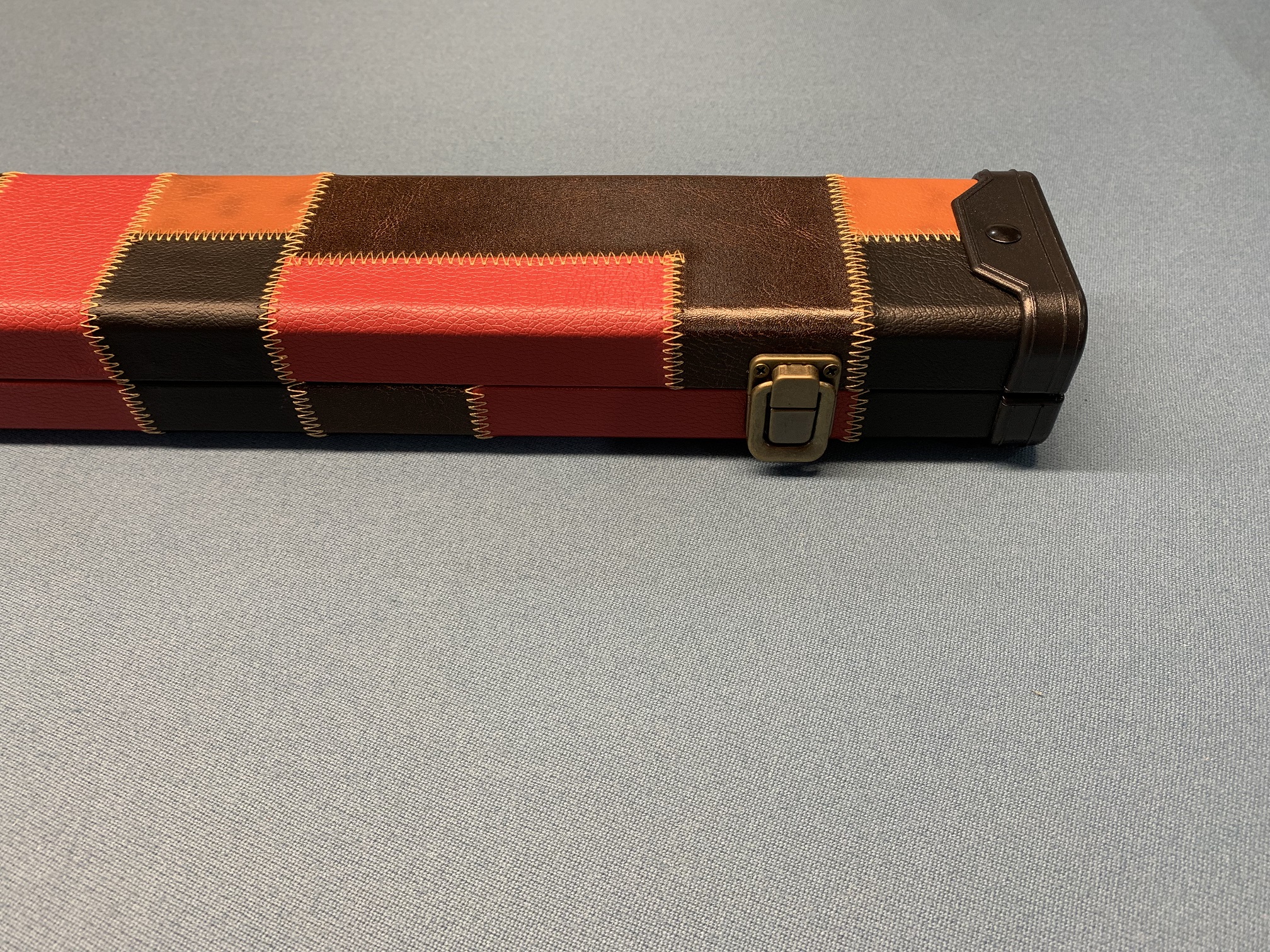 Brand New 1 Piece Double Cue Case – Red/Black/Brown Patchwork Design