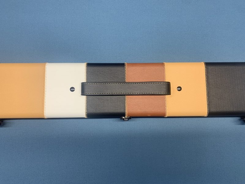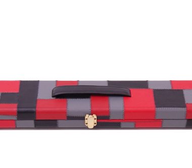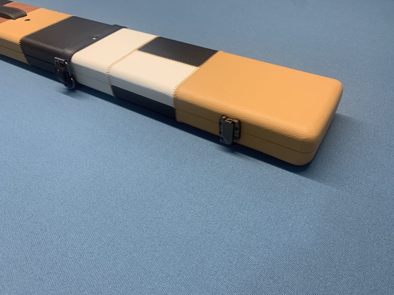 3/4 Wide Multi Coloured Beautiful Cue Case Light Brown Ends – Holds Two Jointed Cues or 3/4 Cue and Extensions + Chalk/Accessories Compartment.