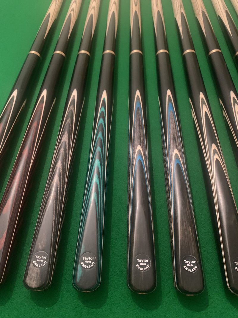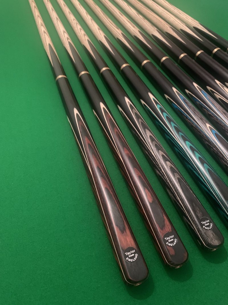 These Hand Spliced Cues are supplied by Taylor Cues, And are finished to a very high specification in their UK workshop and fitted with their Taylor Made Medium Cue Tip.