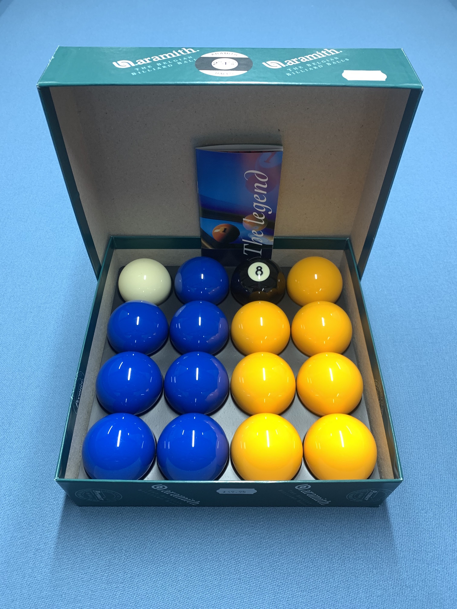 - 2″” Aramith Premier Blue & Yellow Pool Balls – best quality balls in the world!