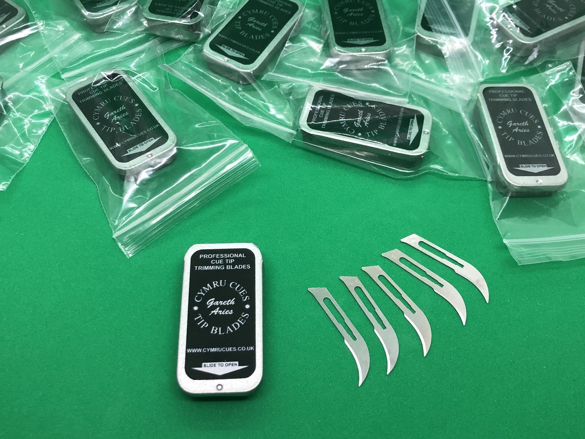 You are Purchasing 5x Cue Tip Trimmers in “Our Own Branded Tin” as images show in a Sealed Packet.