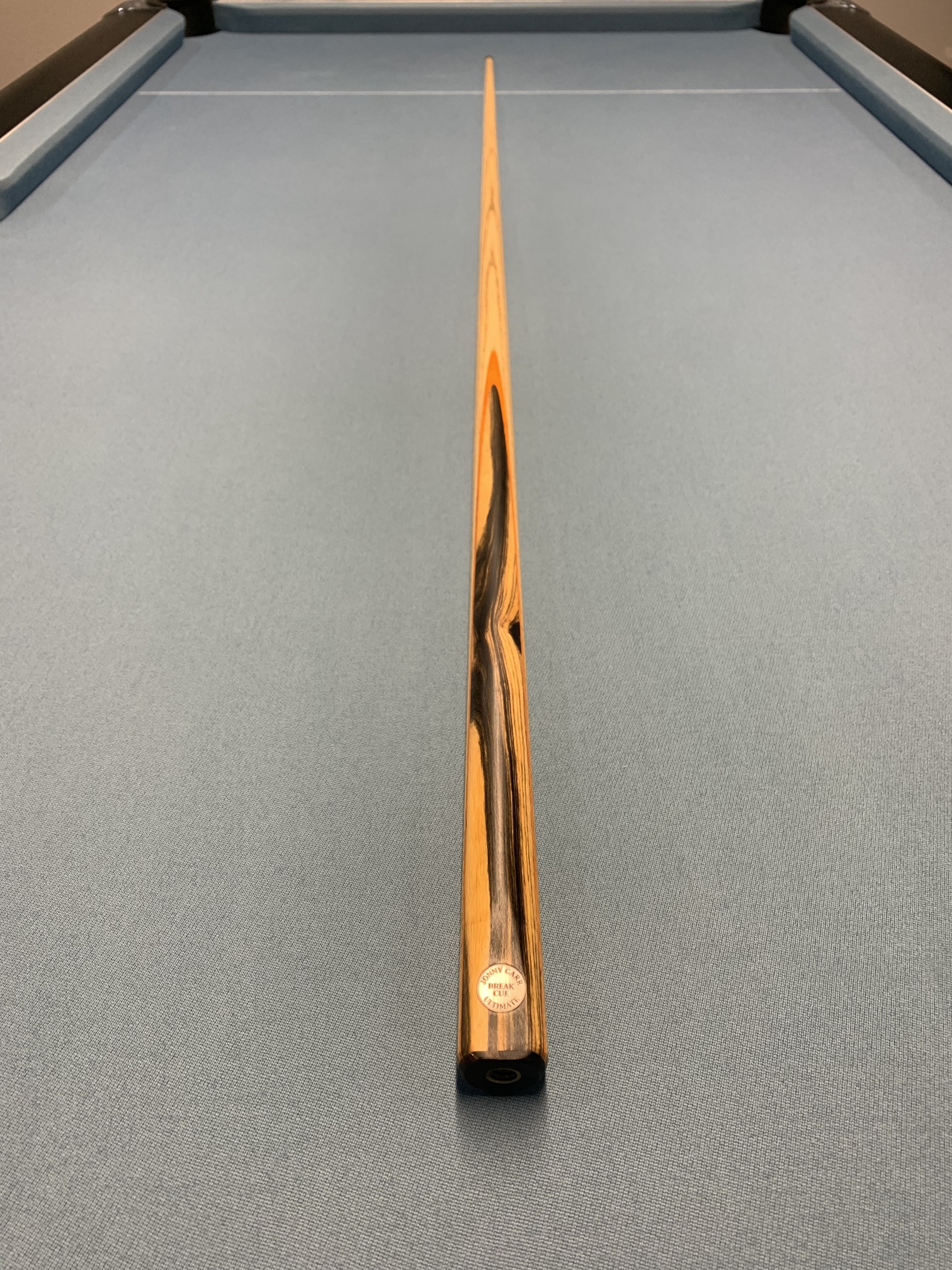This break cue is fitted with a black fibre ferrule, And has one of our own Cymru Cues Crystal Clear Break Tips Fitted with a Orange Tip Pad to match the Cue!