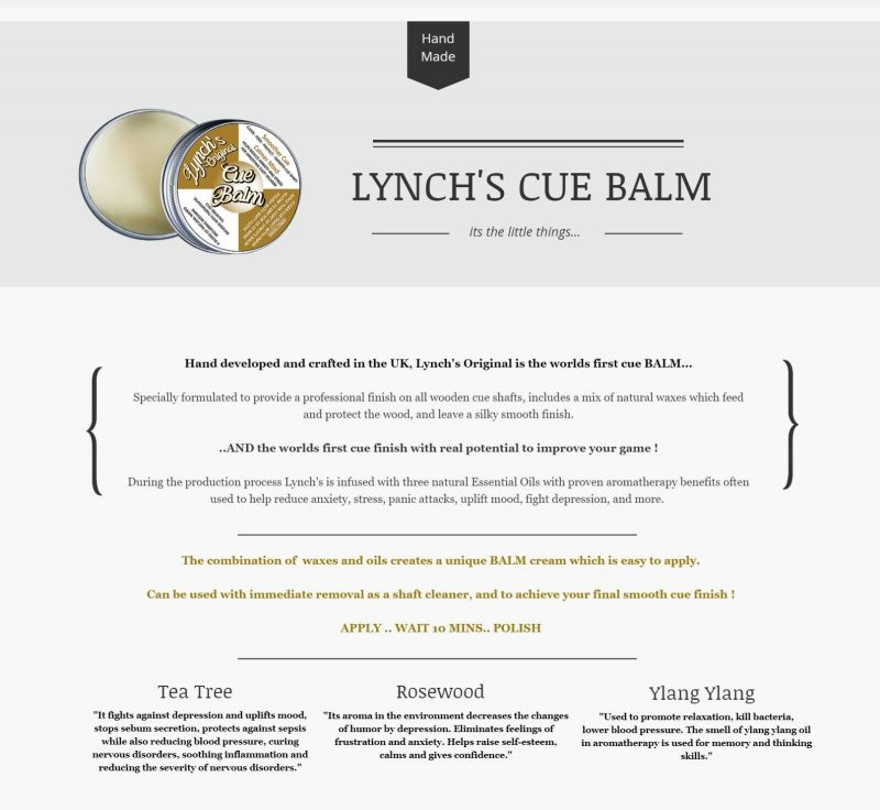 Craft hand made Cue Balm suitable for all wooden cue shafts and for all cue sports disciplines.