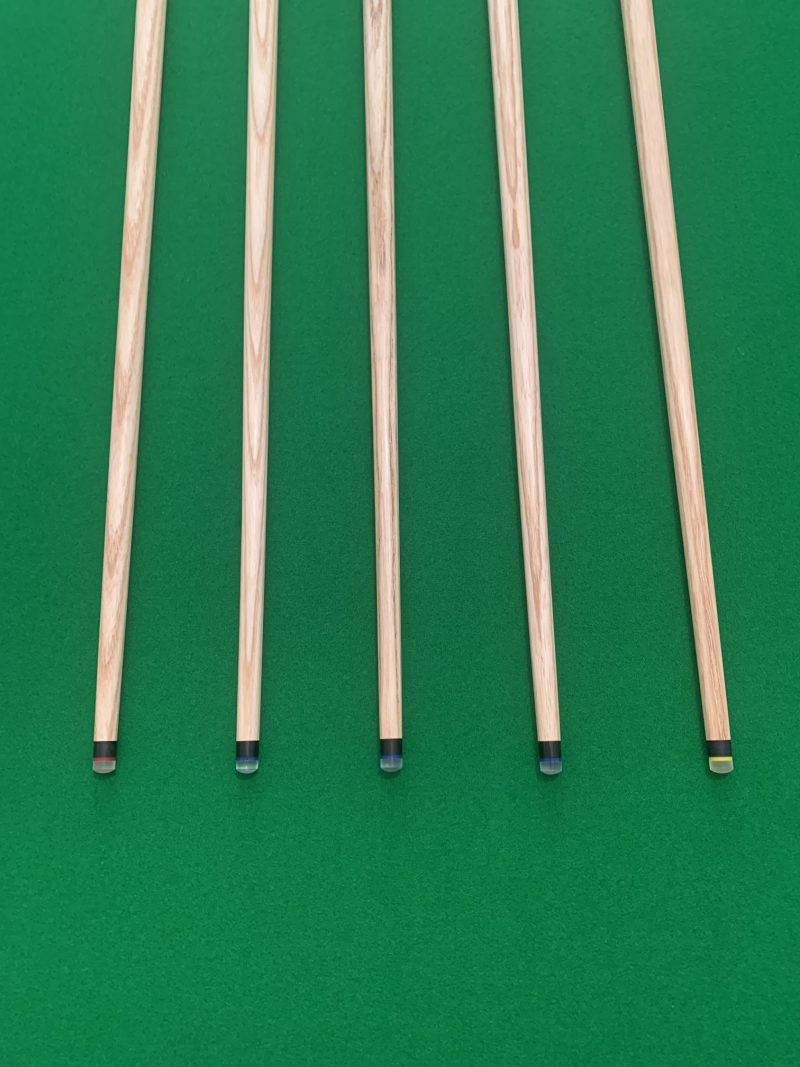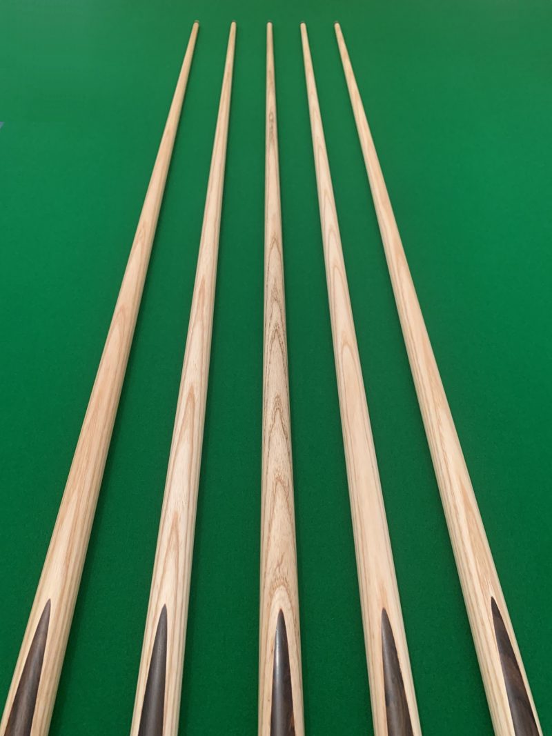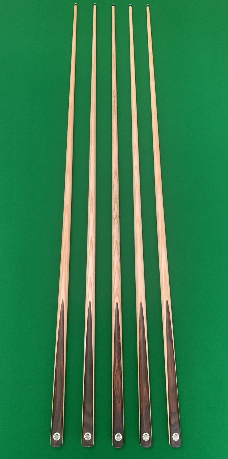 The Ash is carefully selected for strength and straightness before being spliced with the large rosewood front splice. These cues are then turned to its final tapered finish before the numerous sanding and finishing processes are undertaken to achieve a ‘silk smooth’ finish.