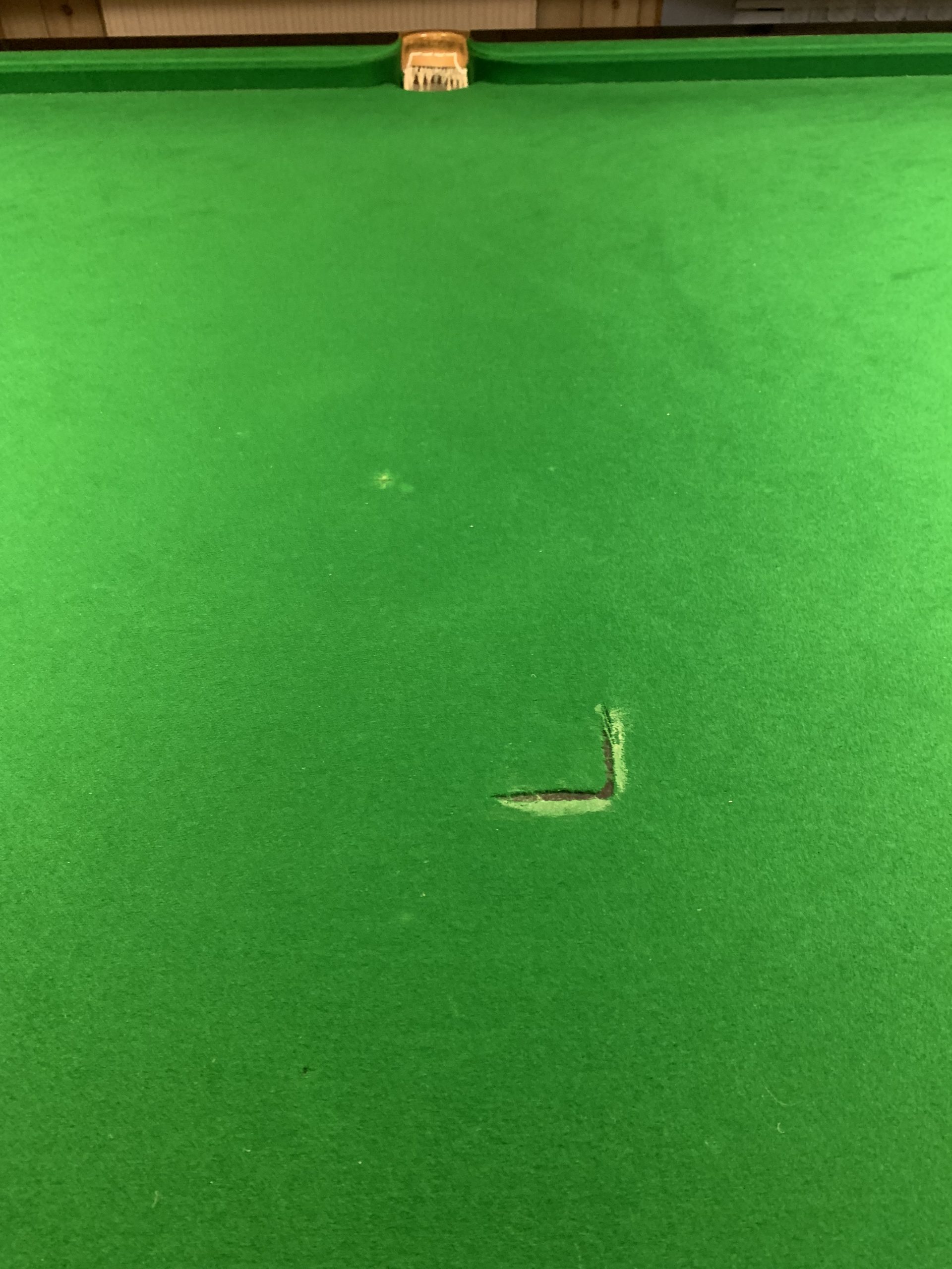 It does have a rip in the cloth, But when the table gets dismantled/moved it would need new cloth anyway.